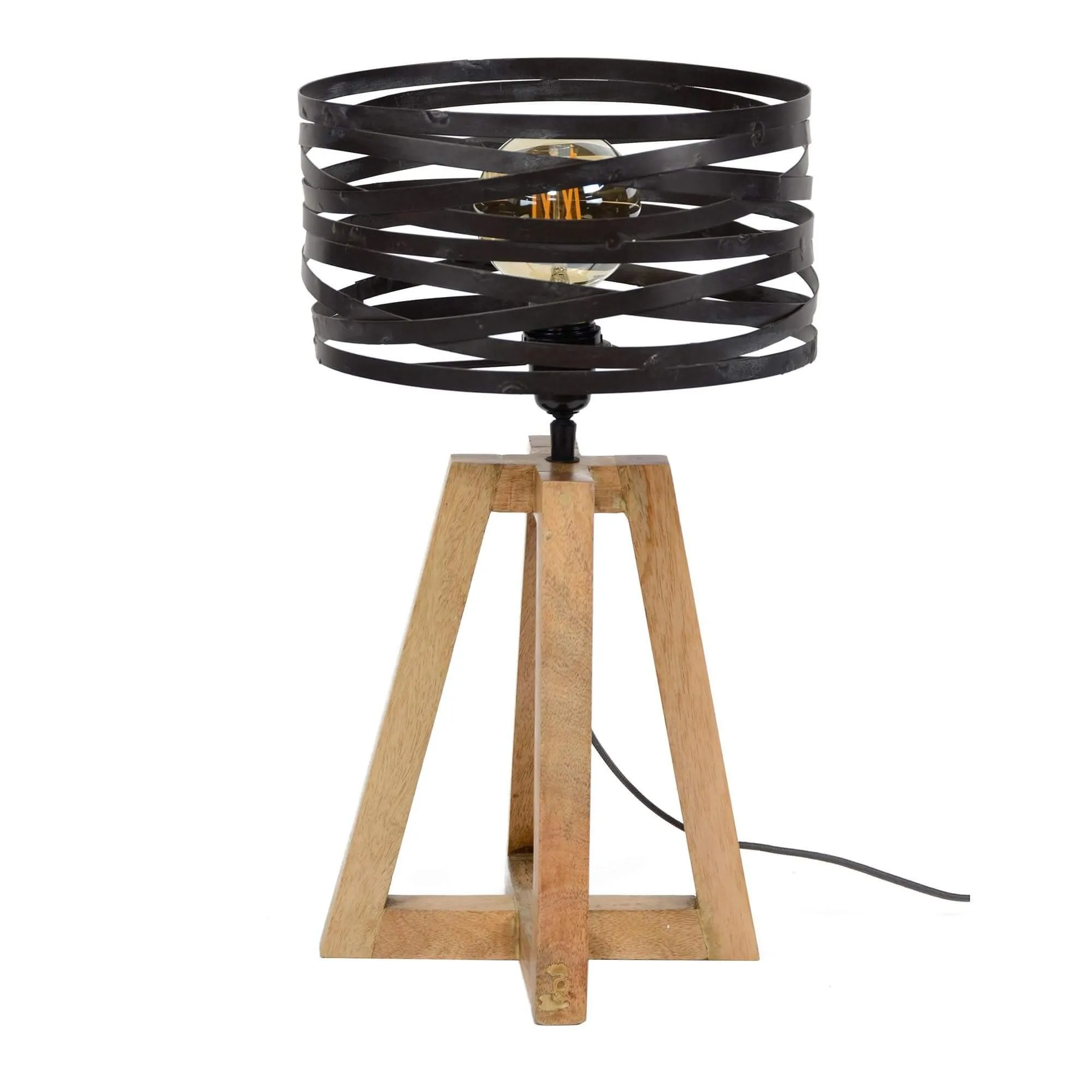 Lampe de bureau style industriel en bois avec abat jour en métal torsadé - Twist