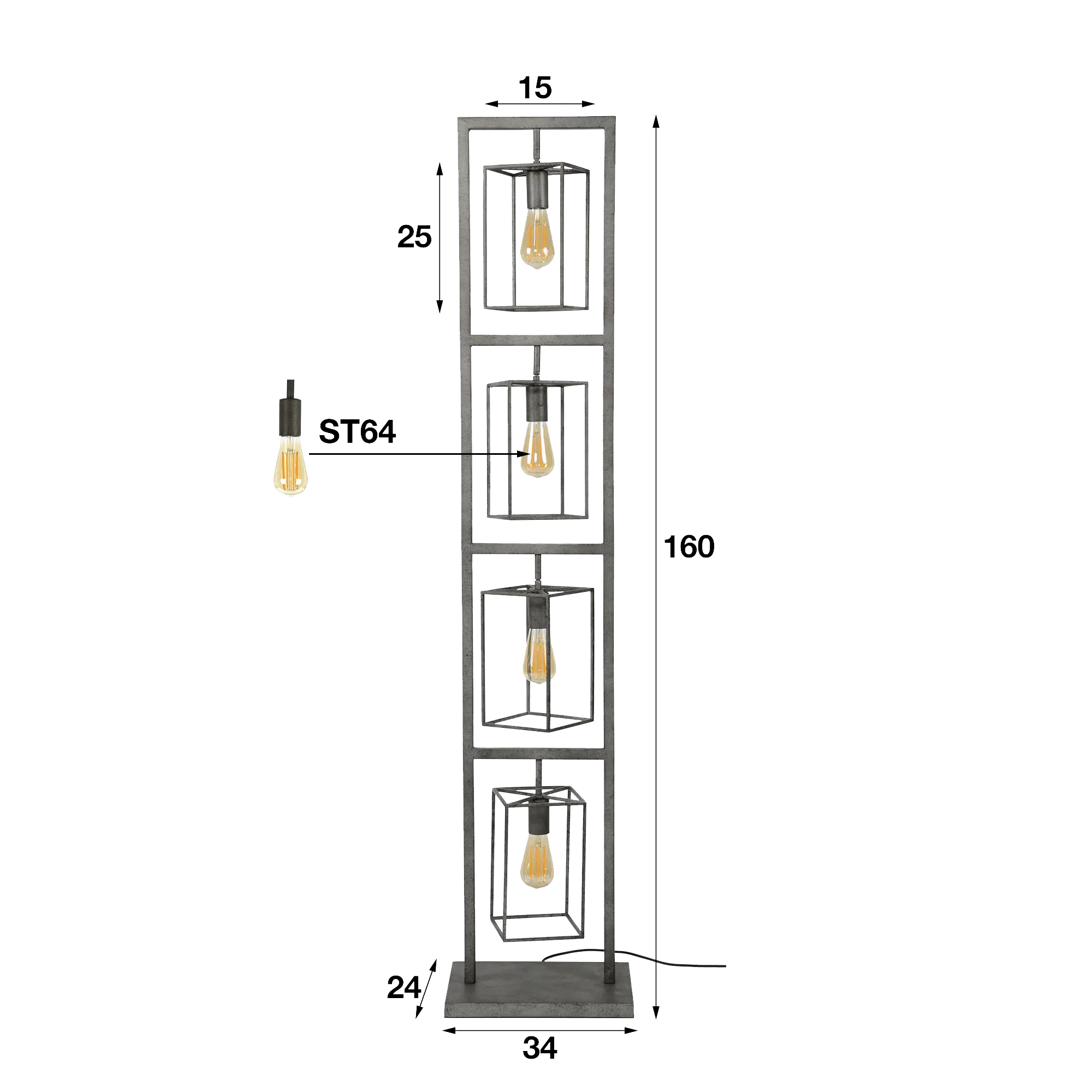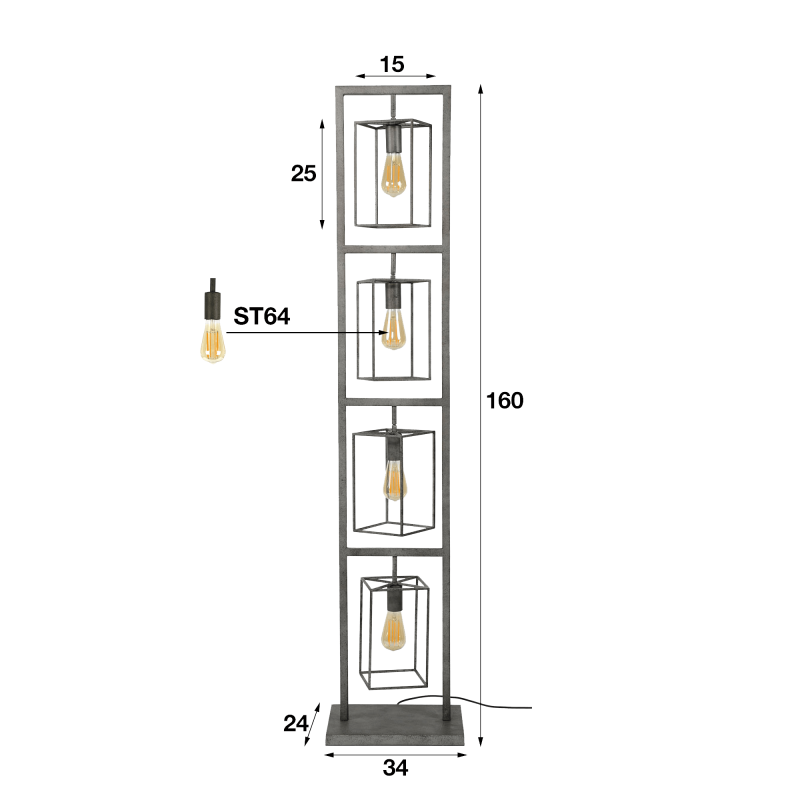 Pour le lampadaire de salon style industriel en métal Nocta, nous voulions proposer une pièce qui raconte la force discrète du métal, tout en apportant une lumière chaleureuse aux intérieurs contemporains. Nos designers ont travaillé une silhouette verticale de 160 cm, rythmée par quatre niches géométriques de 25 cm chacune, où se logent des ampoules ST64. L’ensemble évoque les structures industrielles qui nous inspirent depuis toujours : lignes franches, angles affirmés et matière vivante, légèrement texturée, dont nous avons soigné chaque nuance.