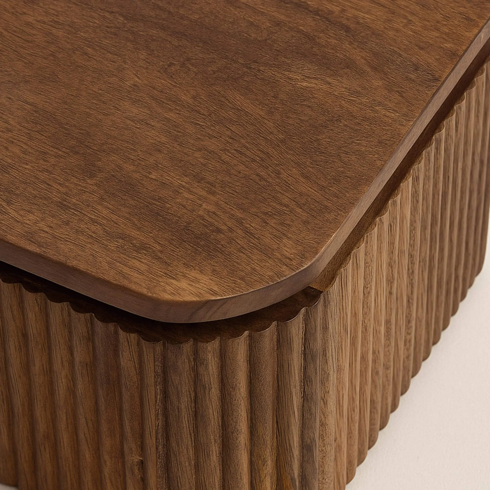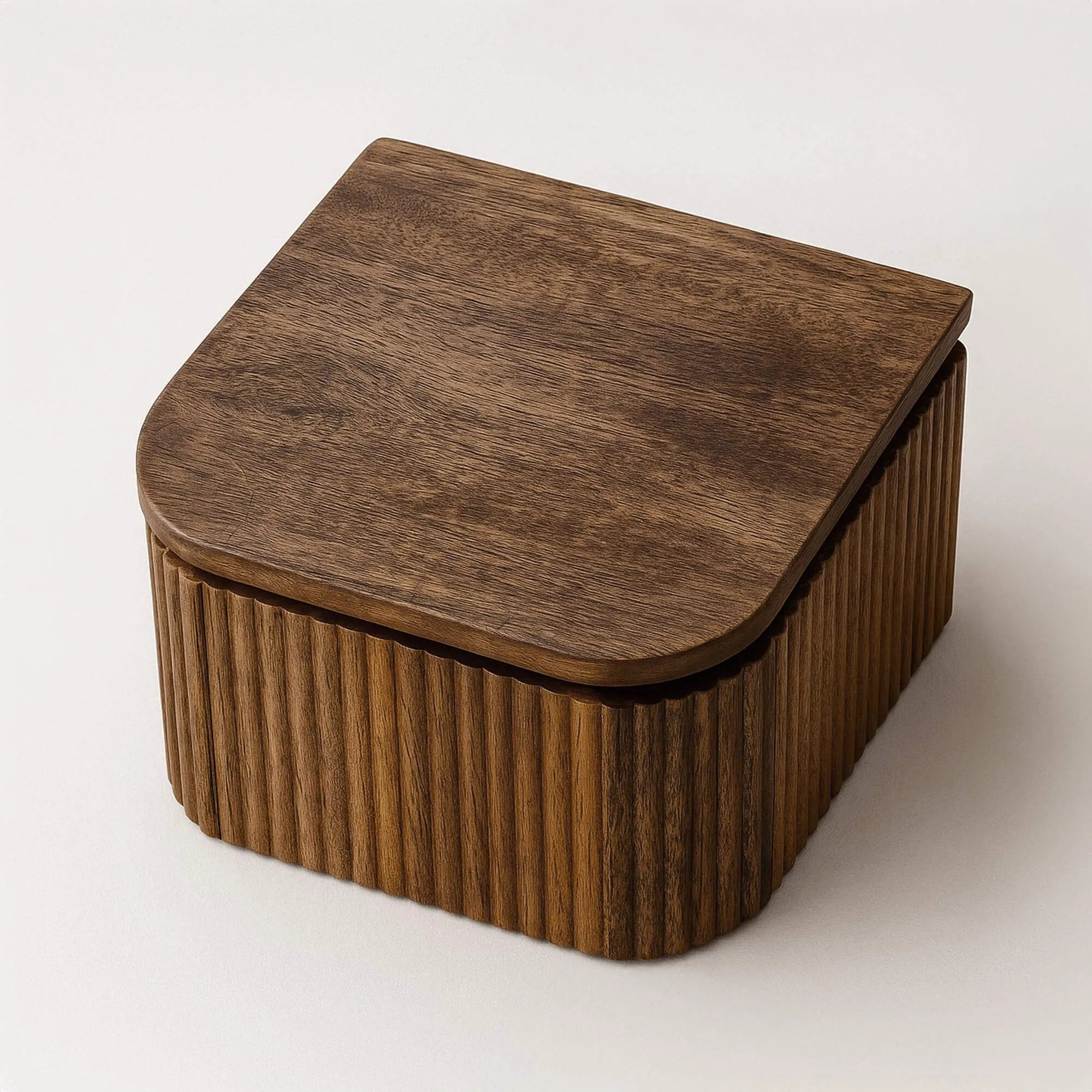 Réalisée de manière artisanale, cette table de chevet en bois massif de manguier révèle une matière vivante, chaleureuse, dont les nuances varient subtilement selon la lumière. Le veinage dense et profond du manguier confère à chaque pièce une personnalité unique, tandis que la finition soignée laisse apparaître un toucher agréable et une surface douce au quotidien. Nous avons particulièrement travaillé les lignes arrondies du plateau et le relief vertical de la façade, qui donnent à l’ensemble une allure inspirée et une identité forte, tout en restant facile à associer.