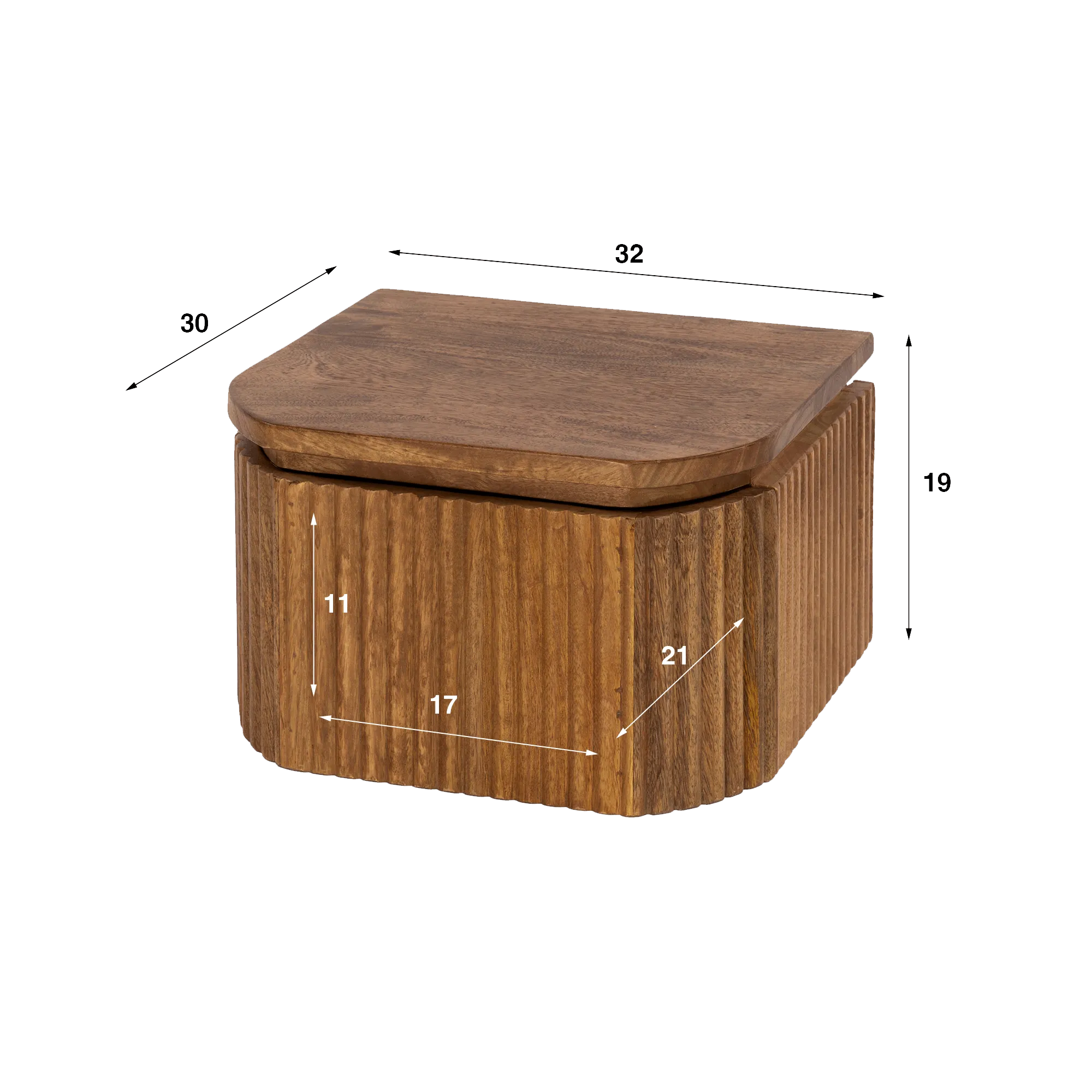 Avec ses dimensions compactes de 32 cm de largeur pour 30 cm de profondeur et 19 cm de hauteur, la table de chevet en bois massif Wave XS se glisse aisément dans les chambres aux volumes mesurés comme dans les intérieurs plus spacieux. Son tiroir intégré, dont la façade nervurée souligne le travail artisanal, offre un espace de rangement pratique pour garder livres, lunettes ou objets personnels à portée de main. La hauteur utile du tiroir permet d’y loger l’essentiel du quotidien sans compromettre la finesse du meuble.