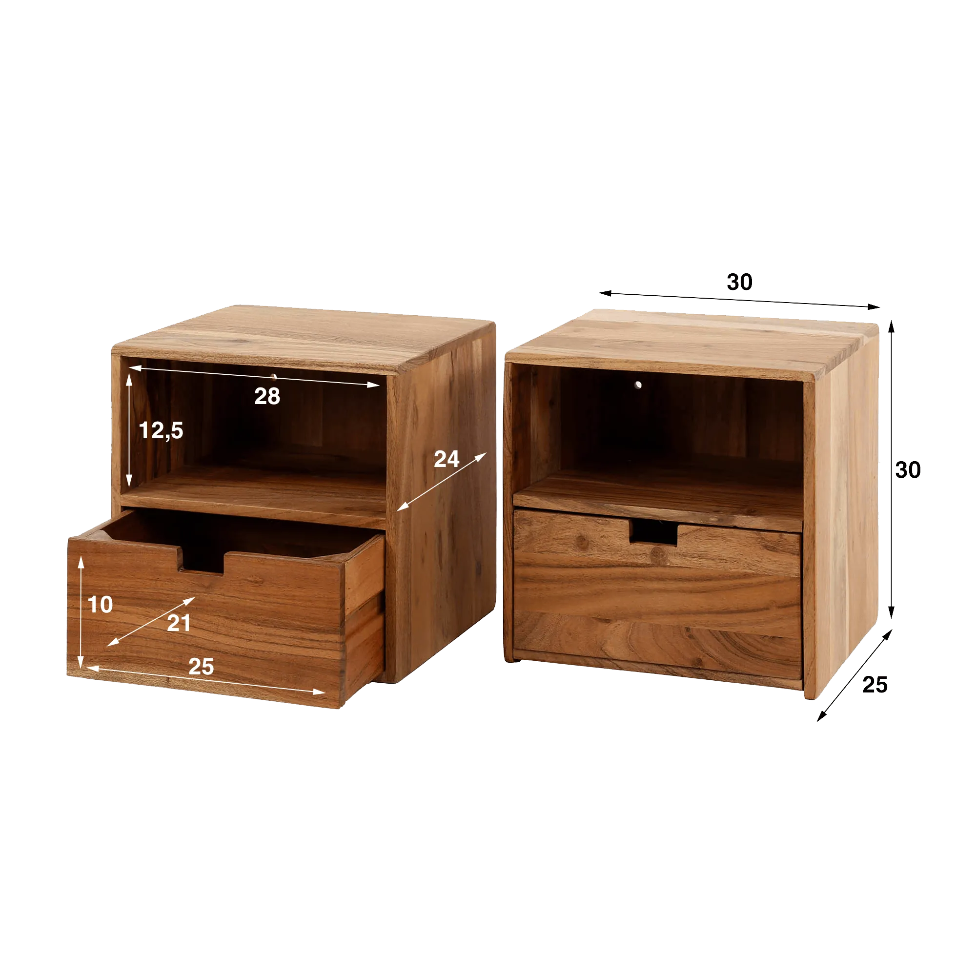Table de chevet suspendue en bois massif (lot de 2) - Flat XS