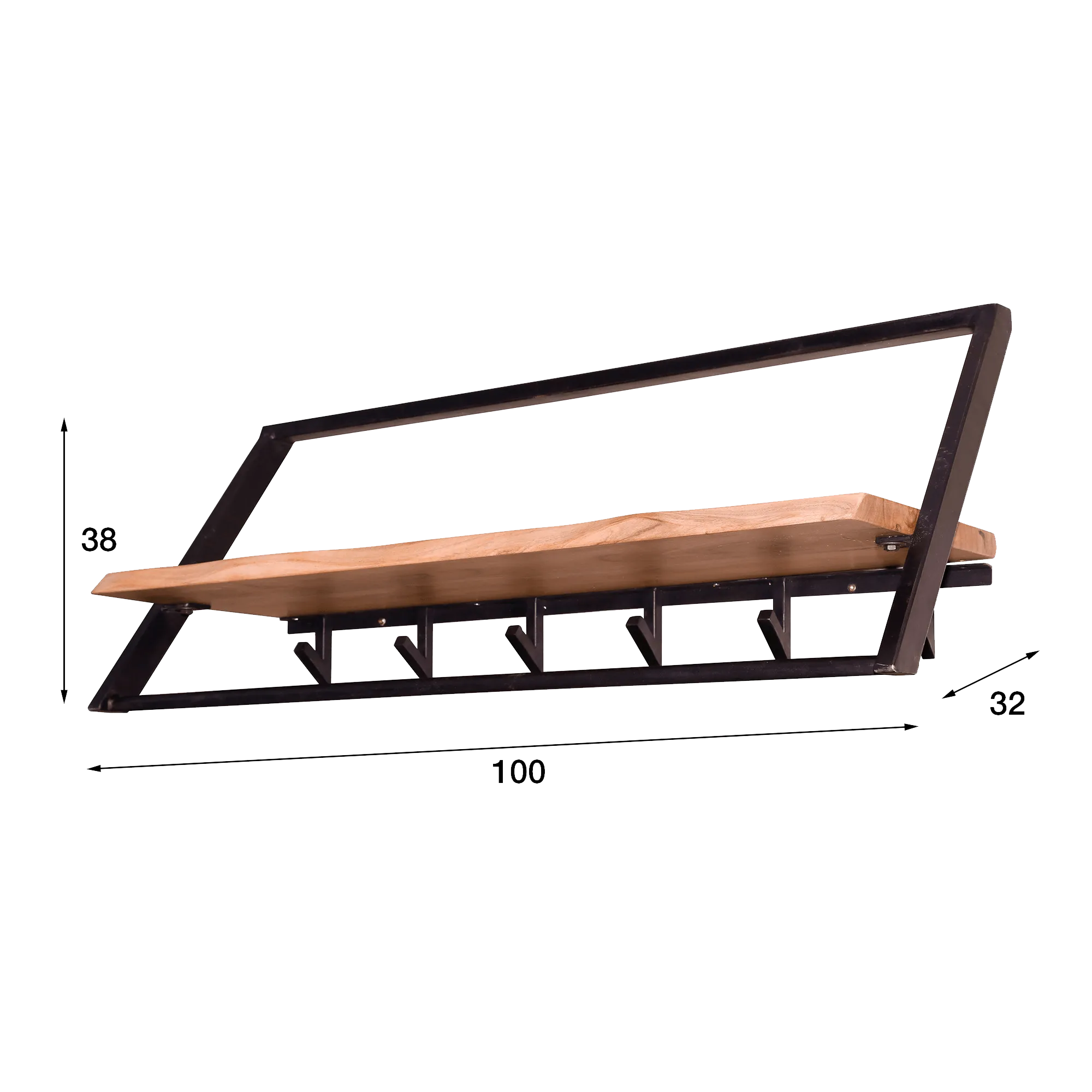 L’étagère supérieure de ce porte manteaux mural en métal, réalisée en bois massif d'acacia, révèle toute la richesse du bois : veinage contrasté, nuances dorées, aspérités naturelles discrètement mises en valeur. Le toucher est doux, la surface soigneusement finie, laissant apparaître le caractère vivant de la matière. Avec une longueur d’environ 100 cm et une profondeur de 32 cm, cette tablette offre un espace confortable pour déposer chapeaux, sacs, boîtes ou objets décoratifs, tout en restant visuellement équilibrée dans une entrée ou un couloir.