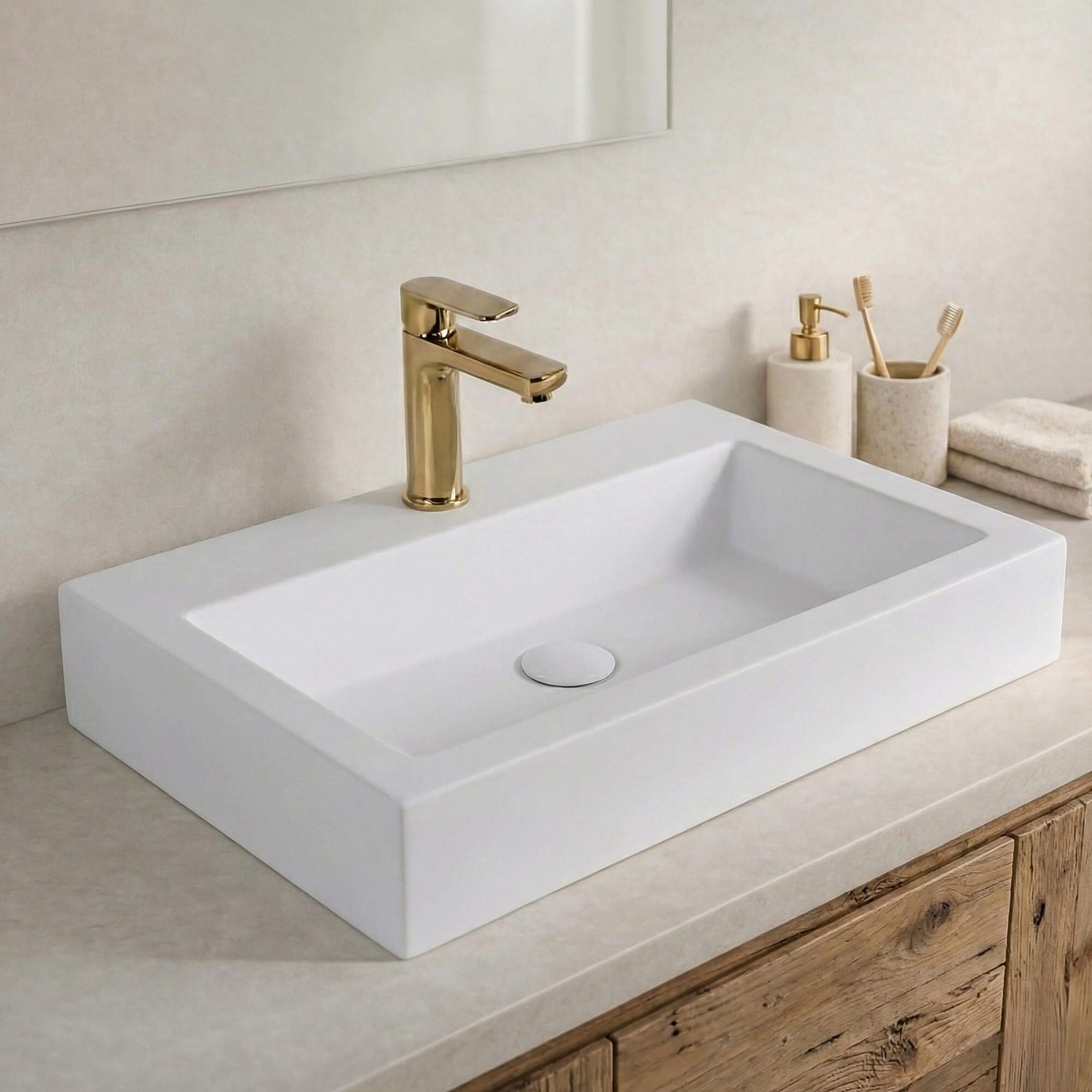 Nous avons conçu cette vasque à poser en céramique rectangulaire, blanc mat, pour accompagner les gestes du quotidien avec simplicité : lavage des mains, soins du visage, routines matinales ou instants plus calmes en fin de journée. Sa silhouette affirmée mais sobre permet de la marier aisément à différents matériaux, du bois massif aux surfaces minérales, en passant par des finitions plus contemporaines.