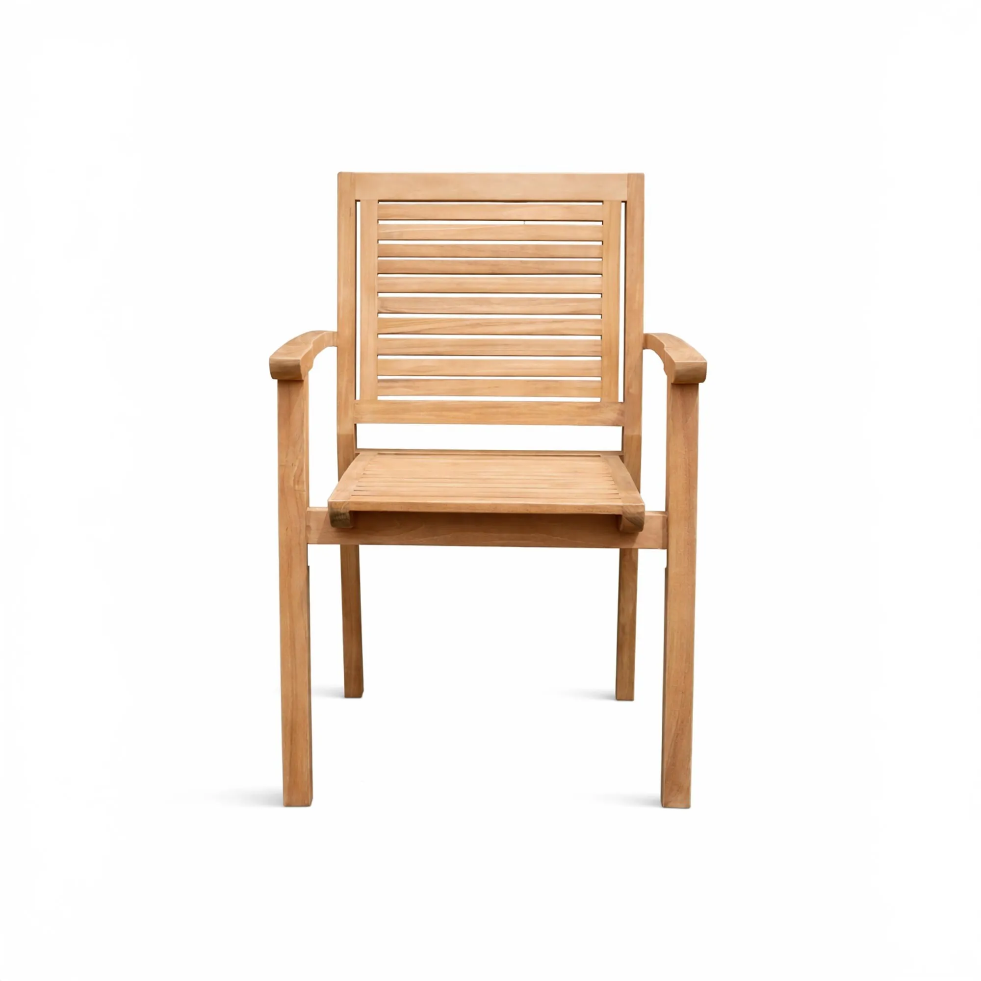 La fabrication artisanale révèle le soin apporté aux assemblages et à la qualité de finition de cette chaise de jardin avec accoudoirs en bois de teck. Le toucher du bois souligne la sélection d’un teck robuste, reconnu pour sa résistance naturelle à l’humidité et aux variations climatiques. Nous sommes particulièrement attentifs à préserver la richesse visuelle du veinage, qui capte subtilement la lumière et confère à chaque pièce une présence singulière.