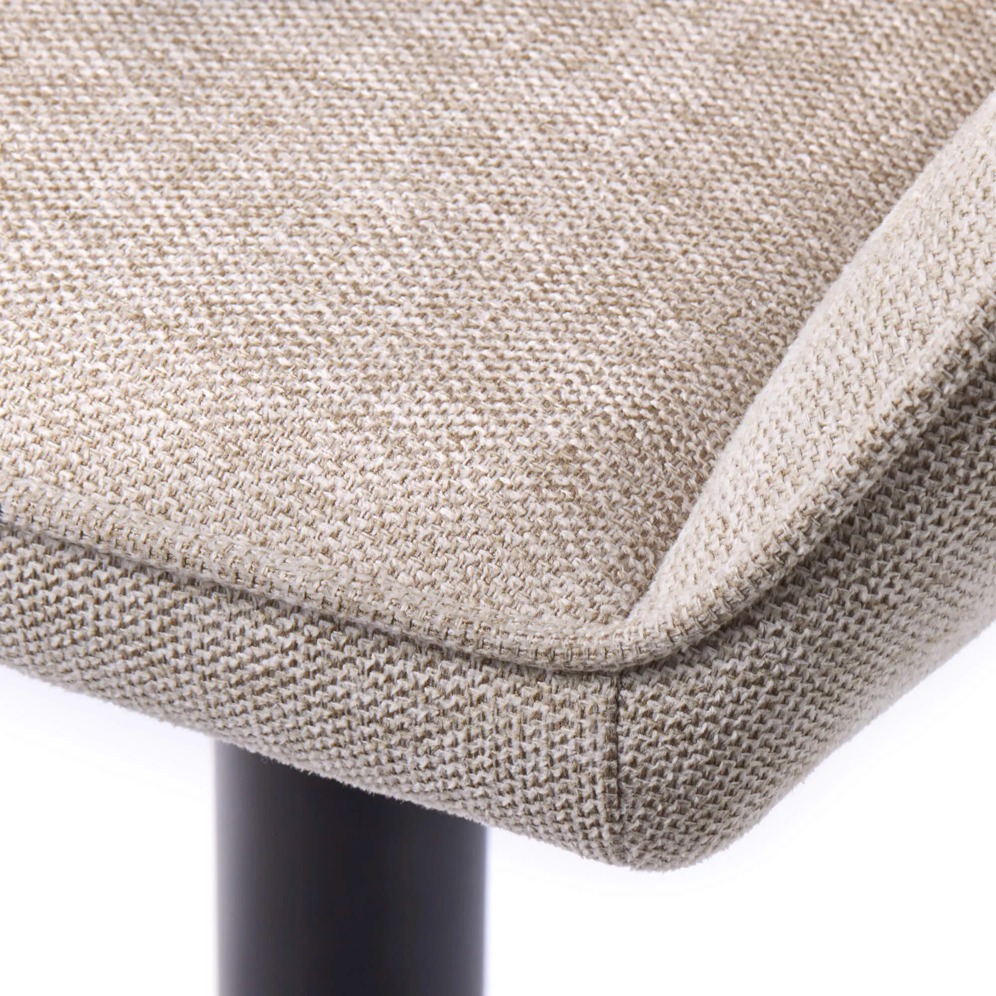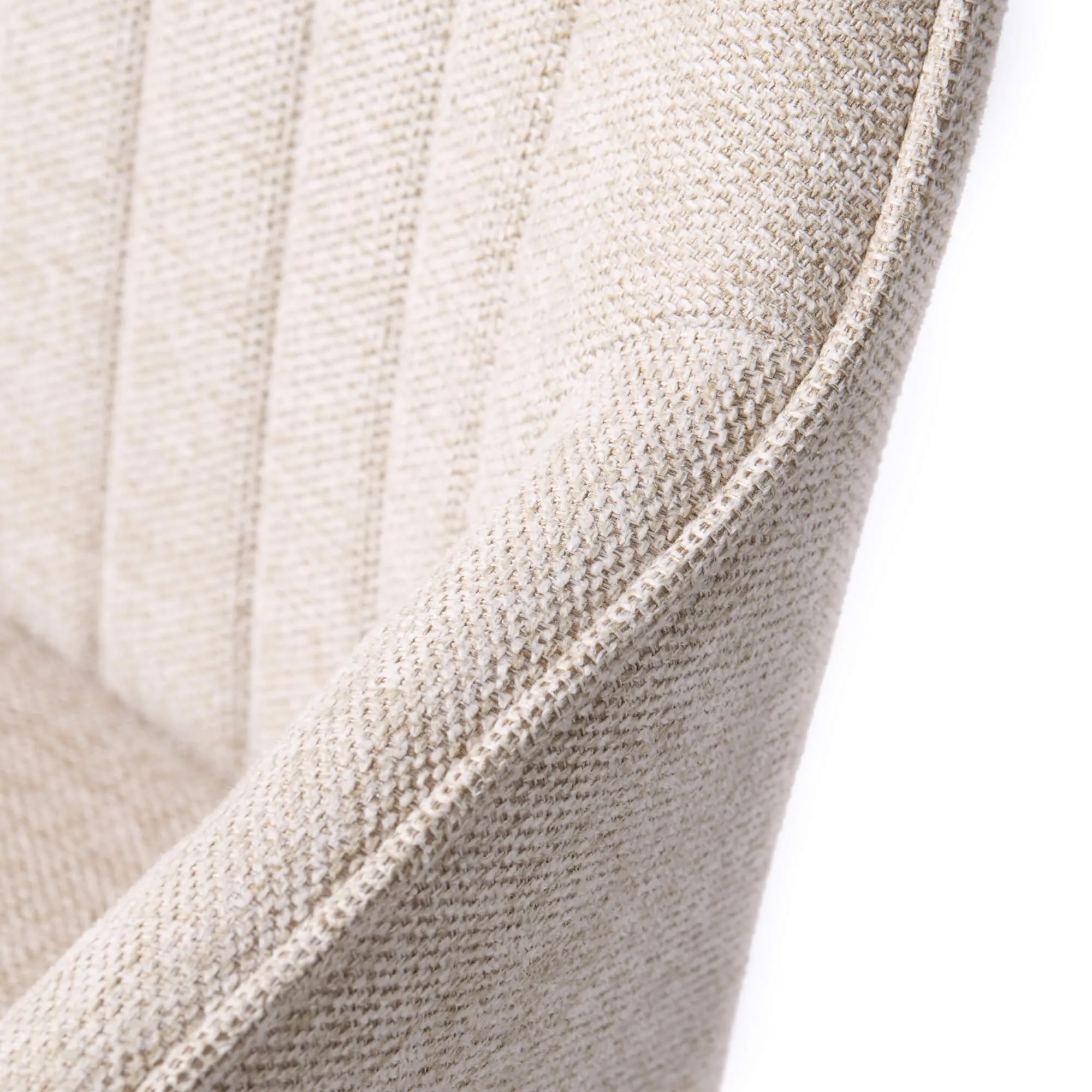 Lorsque nous avons imaginé la chaise de salle à manger en tissu Nolan Stripe, nous voulions une assise qui donne tout de suite envie de s’installer à table et d’y rester longtemps. Sa forme enveloppante dessine un cocon discret autour du corps, tout en restant visuellement légère grâce à sa structure élancée et à son tissu couleur sable, doux au regard comme au toucher.