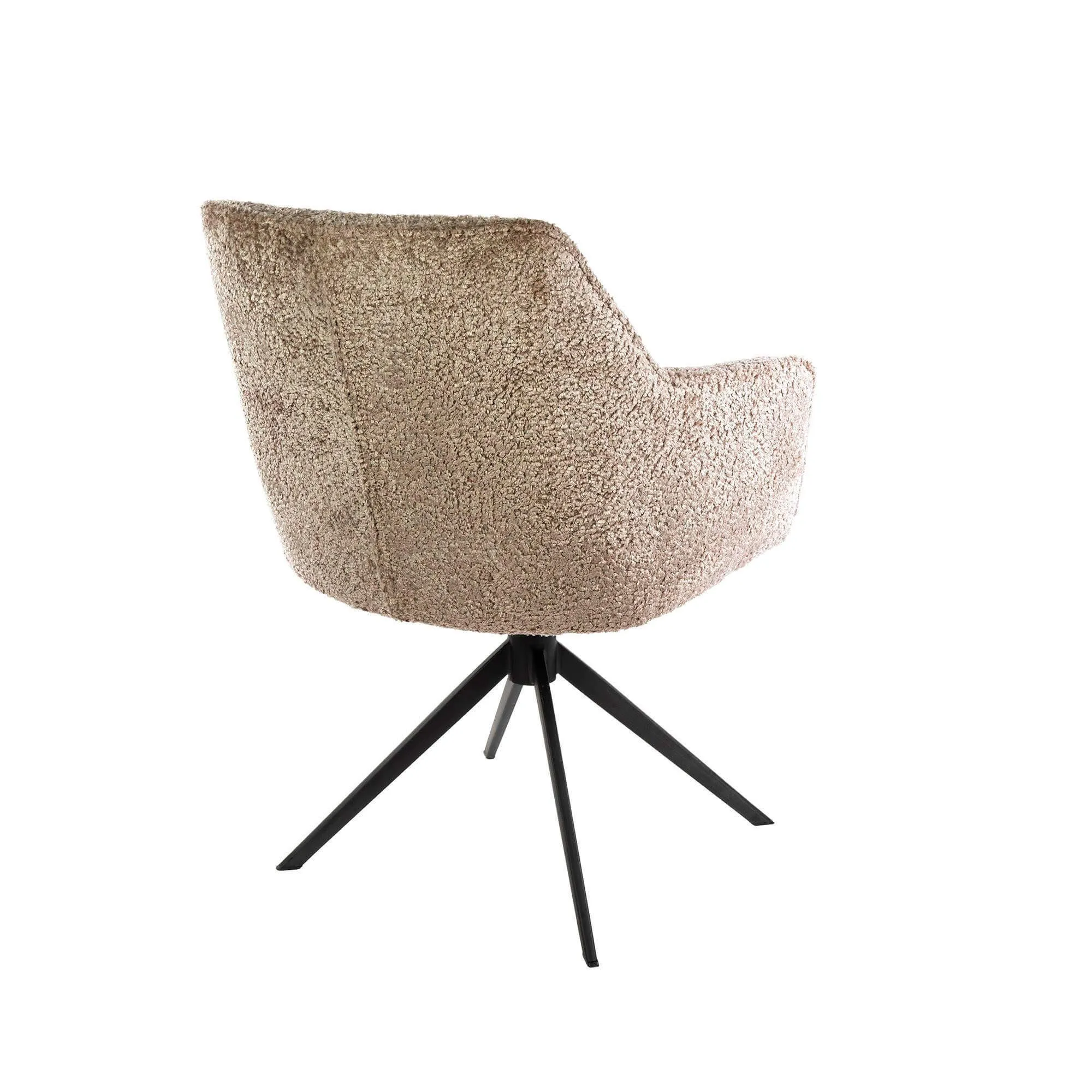 Le piètement en métal de ce fauteuil pivotant pour salle à manger, à la finition soignée, apporte stabilité et légèreté visuelle. Sa fonction pivotante, fluide et silencieuse, a été intégrée pour faciliter les mouvements au quotidien, sans déplacer le fauteuil ni perturber l’harmonie de la pièce. Cette mobilité discrète transforme l’expérience à table, rendant chaque geste plus naturel.