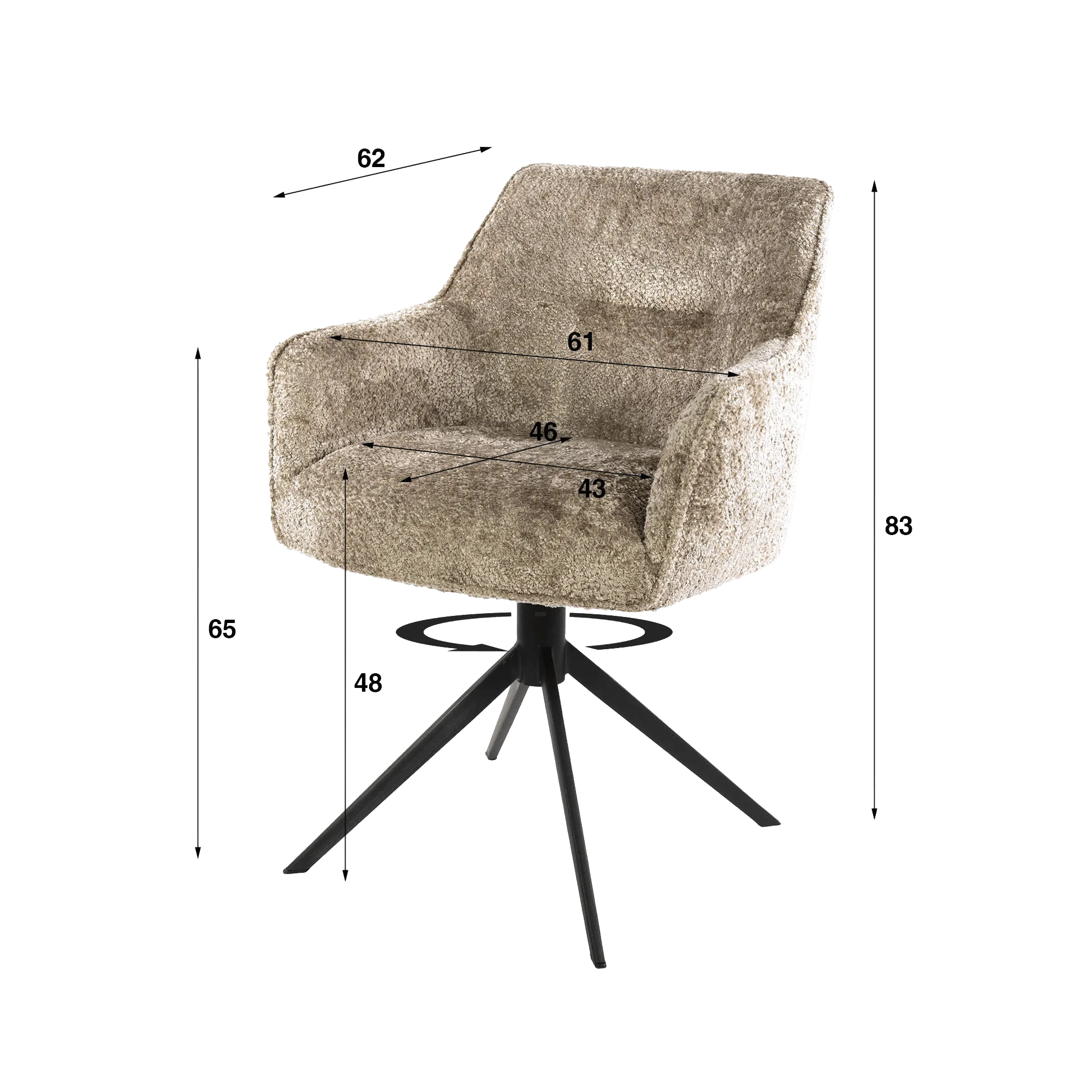 L'enveloppe généreuse de ce fauteuil pivotant pour salle à manger, habillée d’un tissu texturé à la main douce et résistante, invite naturellement à s’installer. Le dossier légèrement incliné et les accoudoirs intégrés offrent un soutien agréable, idéal pour prolonger un repas ou une conversation. L’assise, pensée pour un usage quotidien, propose une profondeur d’environ 46 cm et une largeur confortable d’environ 61 cm, permettant une posture détendue tout en conservant une belle tenue. La hauteur d’assise, située aux alentours de 48 cm, s’adapte facilement aux tables de salle à manger standards.