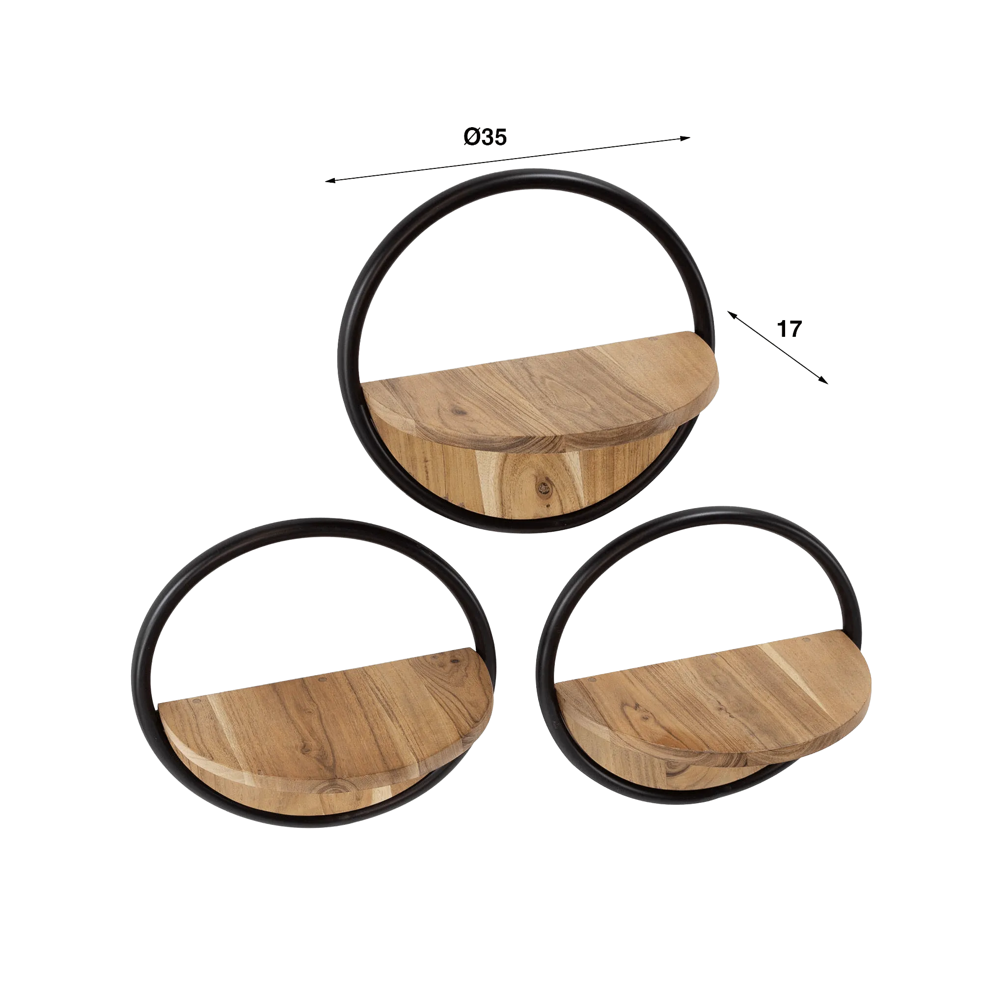 Etagère murale industrielle ronde avec tablette bois (lot de 3) - Urban