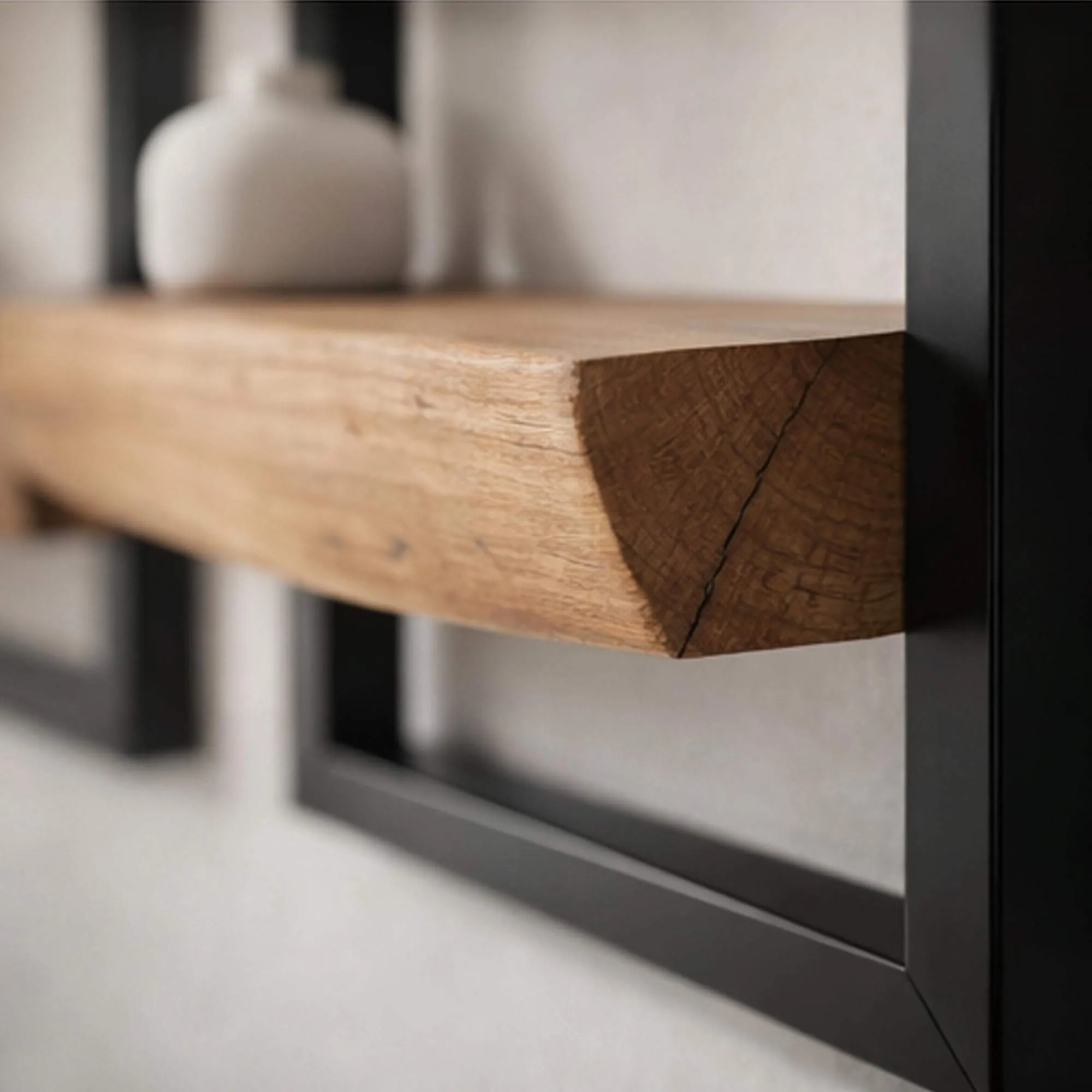 Avec l'étagère industrielle bois et métal Frame, nos designers ont cherché l’équilibre entre structure graphique et matière vivante. Nous sommes particulièrement fiers du dialogue entre la rigueur du métal et la spontanéité du bois, qui permet à chaque composition murale de devenir personnelle, sans jamais paraître figée.