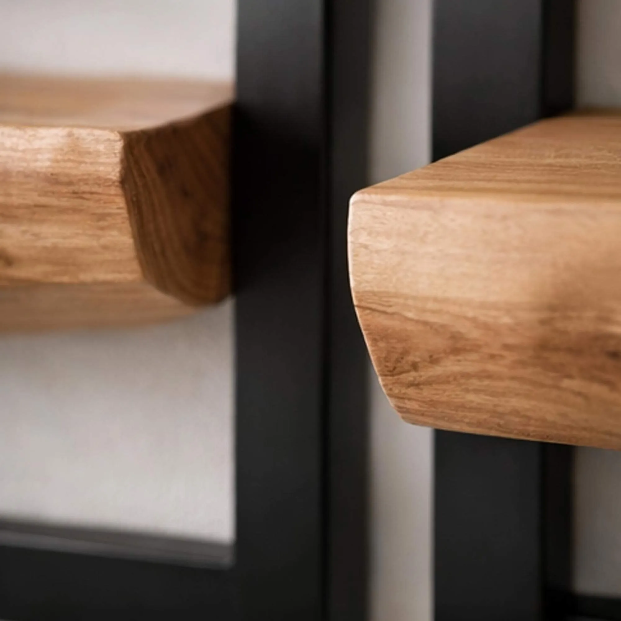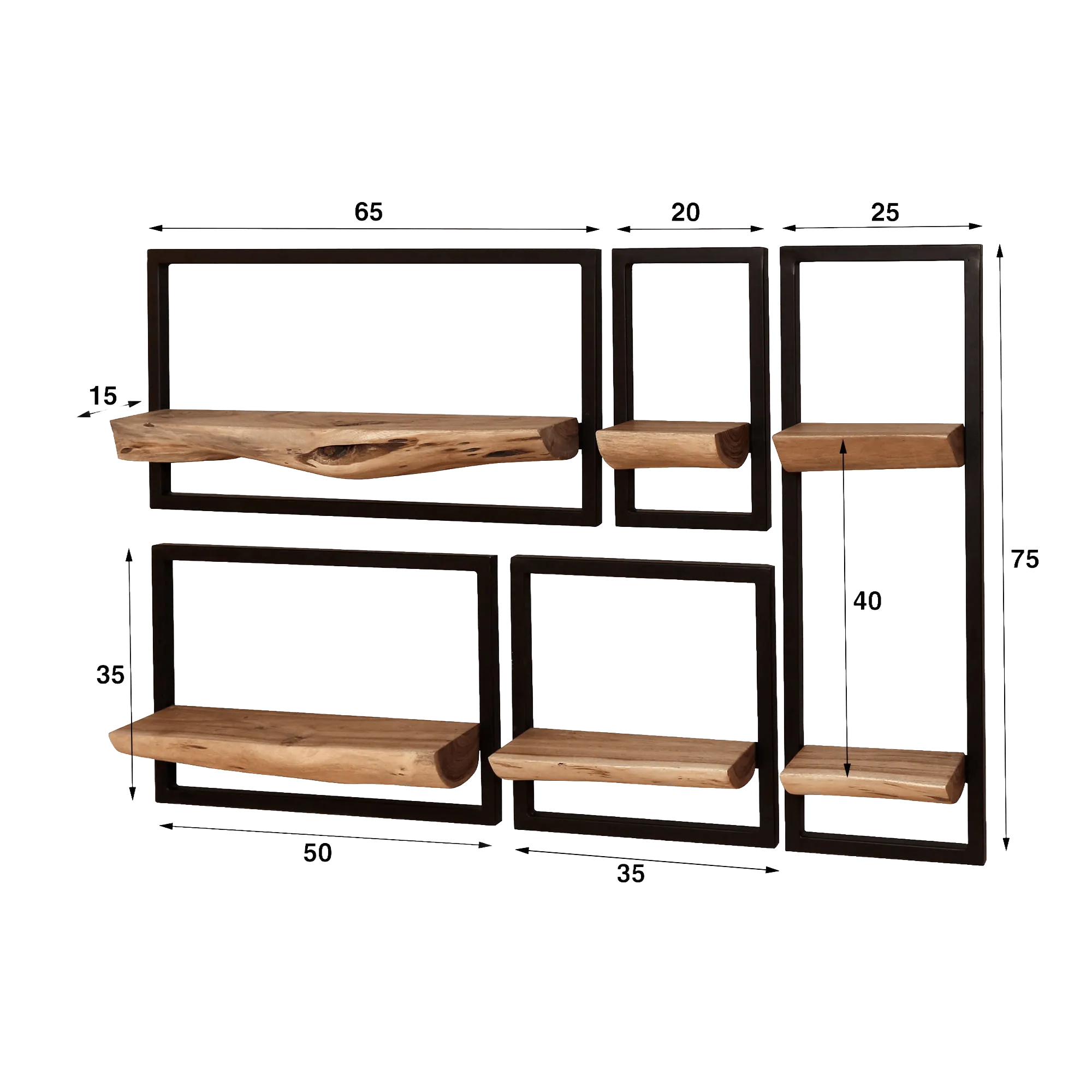 Pensée pour apporter du relief et du rythme aux murs, l’étagère industrielle bois et métal en lot de 5 Frame traduit notre envie d’associer la force du métal noir à la chaleur vivante du bois massif. Nous avons imaginé cet ensemble comme une composition murale modulable, capable d’habiller un espace tout en restant légère visuellement. Le contraste entre les cadres en métal noir et les plateaux en acacia crée une présence affirmée, naturelle et contemporaine.