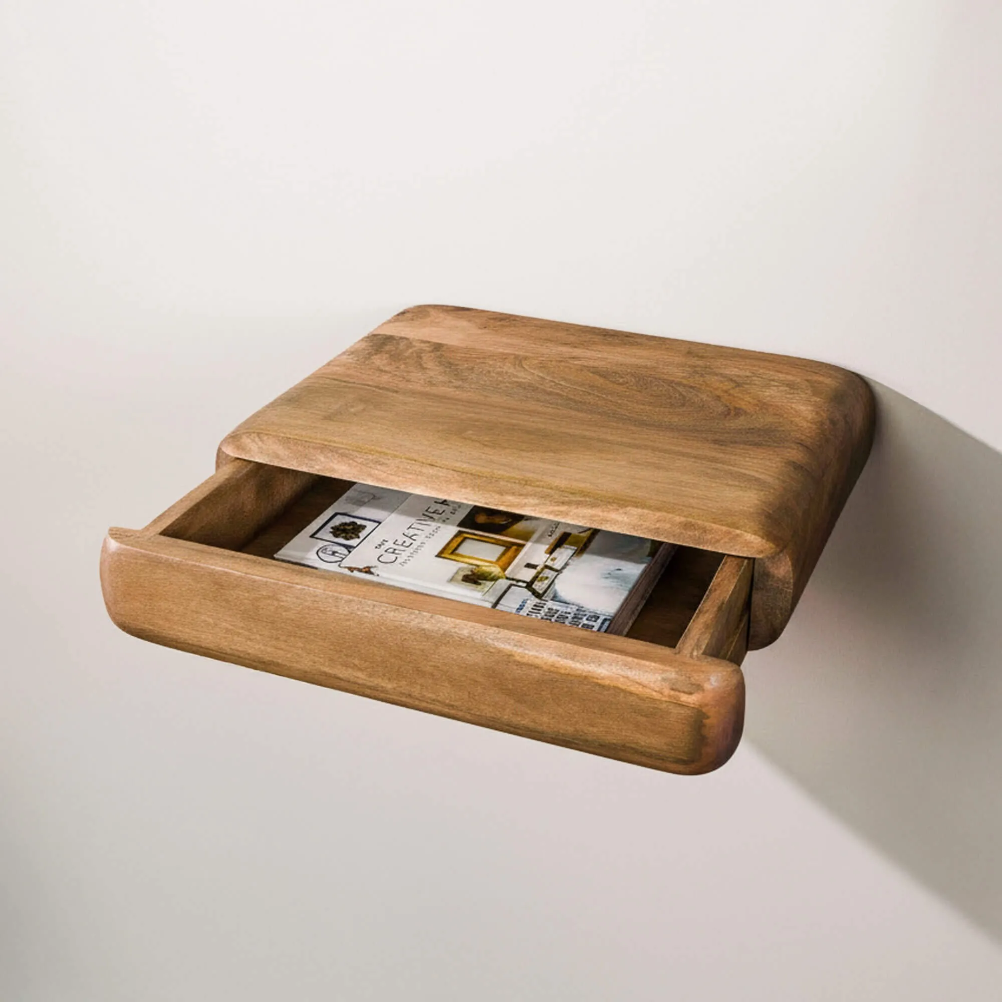 Avec ses dimensions d’environ 45 cm de largeur, 35 cm de profondeur et 10 cm de hauteur, cette table de chevet suspendue en bois massif avec tiroir s’intègre facilement dans des chambres compactes comme dans des espaces plus ouverts. Le tiroir, discret mais efficace, propose un espace intérieur utile proche de 36 cm de largeur, environ 25 cm de profondeur et 6 cm de hauteur, idéal pour garder à portée de main livre, lunettes ou objets personnels sans surcharger la surface.