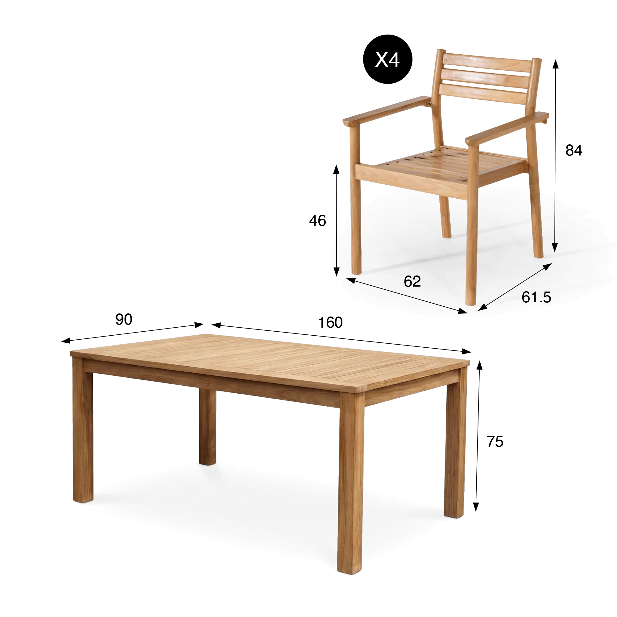 Nous avons imaginé cet ensemble table et chaises de jardin comme une invitation à profiter pleinement des beaux jours, dans un esprit à la fois naturel et apaisant. Composé de la table en bois massif de teck Taro et de quatre chaises en bois de teck massif Sento, ce pack crée une harmonie visuelle fondée sur la sincérité du matériau et la justesse des proportions. Le teck, sélectionné pour sa résistance remarquable aux conditions extérieures, révèle ici toute la richesse de son veinage, dont les nuances chaleureuses apportent une présence authentique à votre terrasse ou à votre jardin.