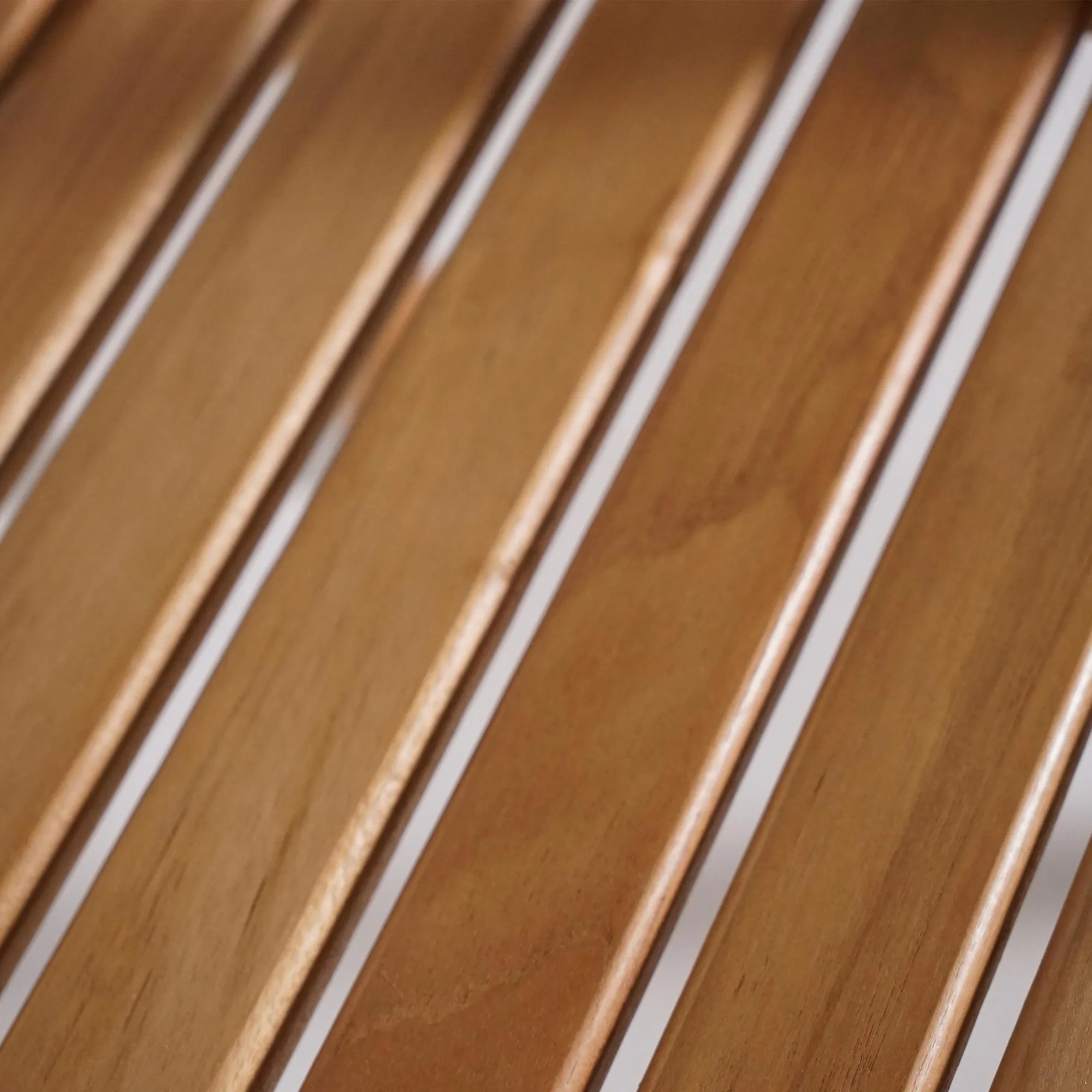 Les chaises de jardin Sento prolongent cette recherche d’équilibre par leur silhouette légèrement galbée et leurs accoudoirs intégrés, pensés pour accompagner naturellement les moments de détente. Le dossier composé de traverses horizontales subtilement courbées soutient le dos avec douceur, tandis que l’assise ajourée favorise la circulation de l’air et renforce la durabilité de l’ensemble. Avec environ 51 cm entre accoudoirs et une hauteur totale de 84 cm, elles offrent une posture confortable pour partager un repas ou prolonger une soirée en extérieur.
