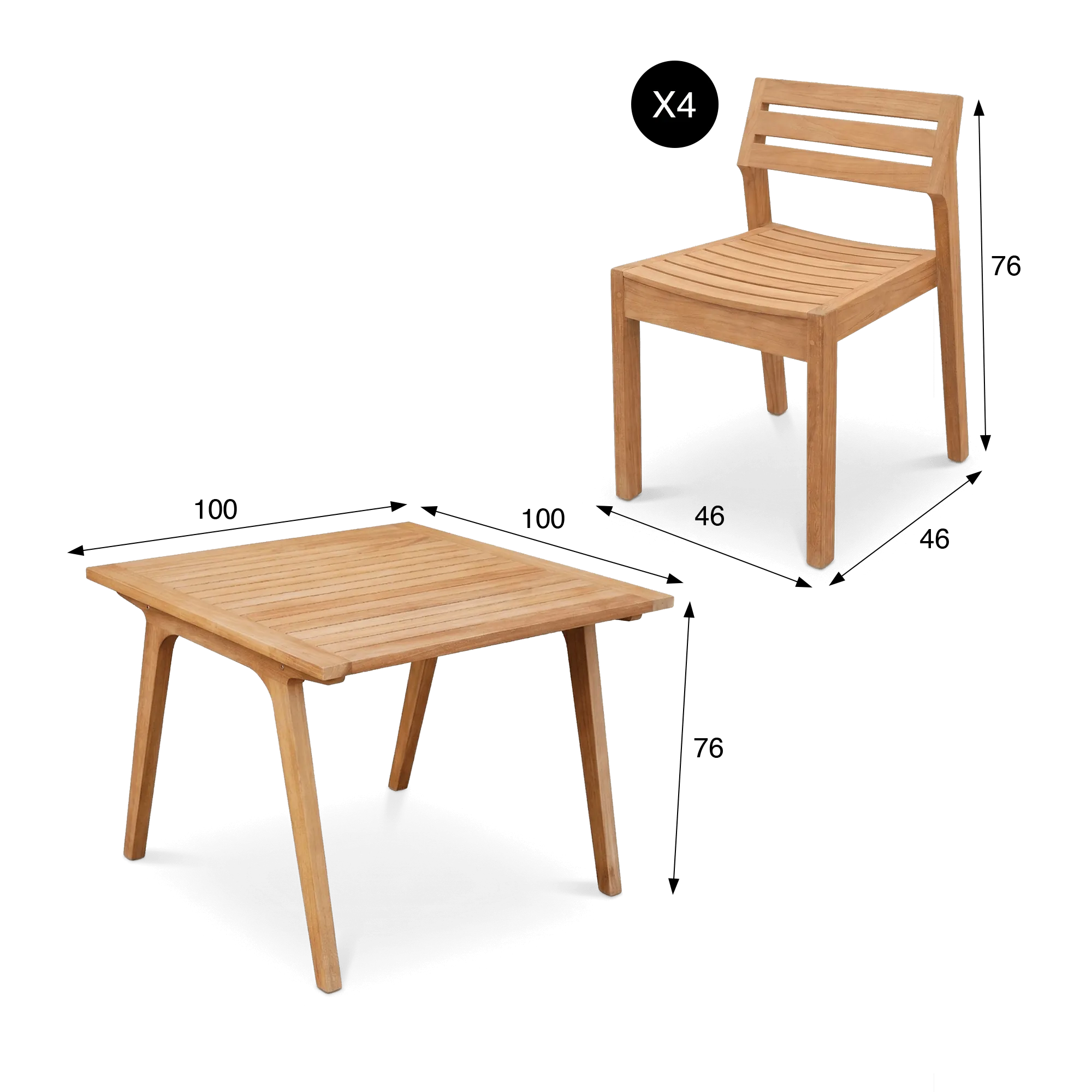 Ensemble table et chaises de jardin en bois de teck 4 personnes - Roku