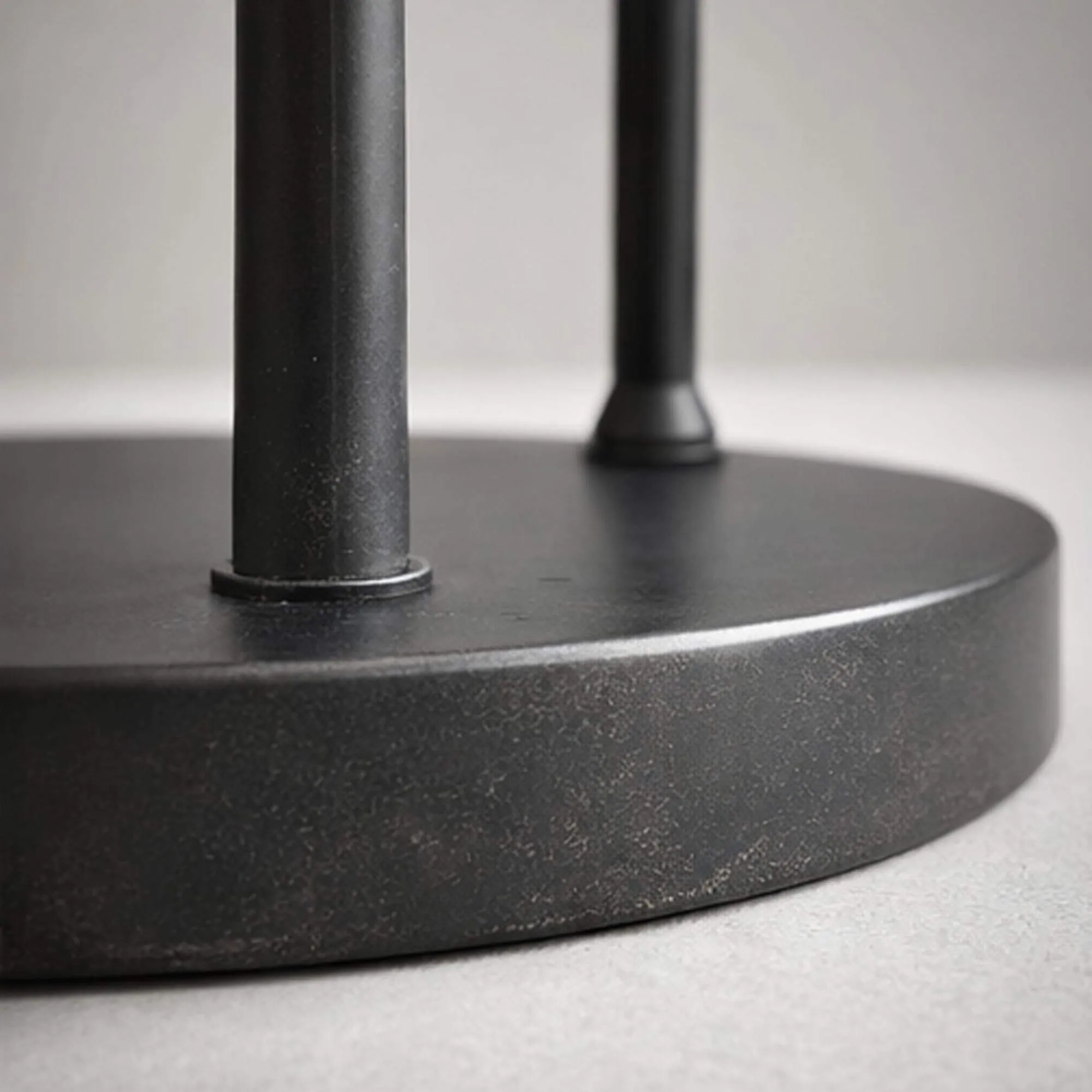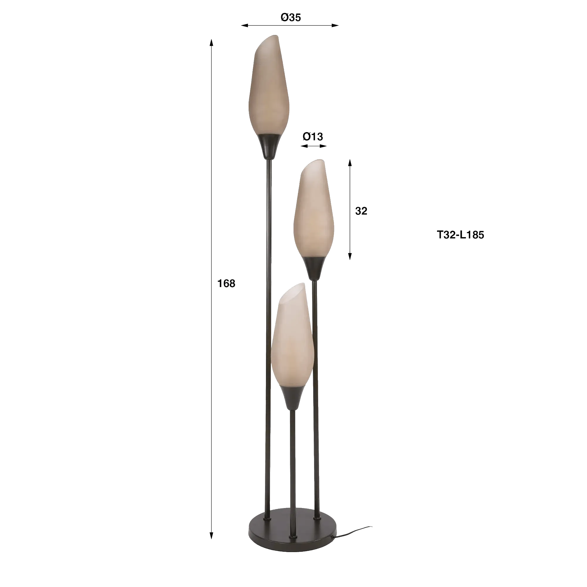 La structure de ce lampadaire à poser en métal brun avec abat-jour en verre opalin révèle une finition profonde et légèrement texturée qui apporte une présence chaleureuse, tout en soulignant la finesse des lignes. Elle repose sur une base circulaire de 35 cm de diamètre qui assure une excellente stabilité et participe à l’équilibre général de l’ensemble. Nous avons souhaité que la sobriété du métal brun contraste délicatement avec la douceur du verre opalin soufflé à la main, dont la surface satinée filtre la lumière pour produire une ambiance feutrée et confortable. Chaque abat-jour, d’environ 32 cm de hauteur pour un diamètre de 13 cm, diffuse un halo délicat qui met en valeur les volumes de la pièce.